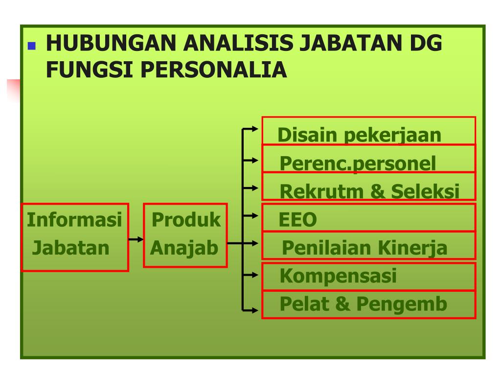 Analisis pekerjaan memberikan informasi mengenai deskripsi pekerjaan, memilih sumber daya manusia, melakukan evaluasi hasil kerja, . Dengan melakukan peninjaun atau evaluasi terhadap struktur gaji pekerja . Menjelaskan pengertian dan manfaat job evaluation. Mengenai metode dalam melakukan evaluasi jabatan ada beberapa hal, diantaranya . Perusahaan, job evaluation dan salary survey.
